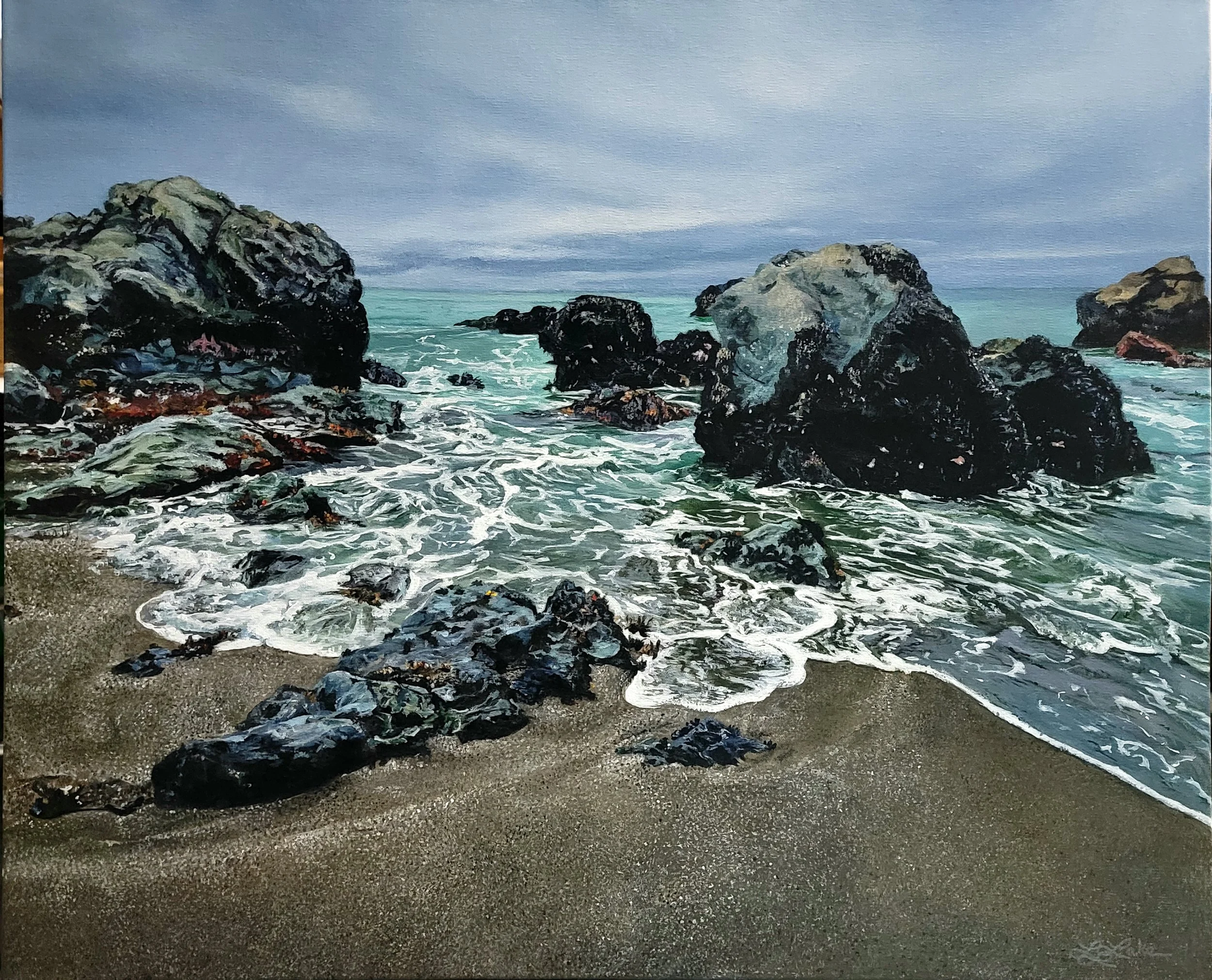 My favorite place to be is at the coast. You can take in the beauty, power, and serenity anywhere along the Pacific North Coast. The water and the shoreline it creates are an endless source of inspiration. It is sometimes moody, sometimes calm, sometimes turbulent, but always captivating. My hope is to share with the viewer the power of the crashing waves, to sense the rhythm of the water, even when it may seem still, and to catch a glimpse of the everchanging shoreline that these waters shape.